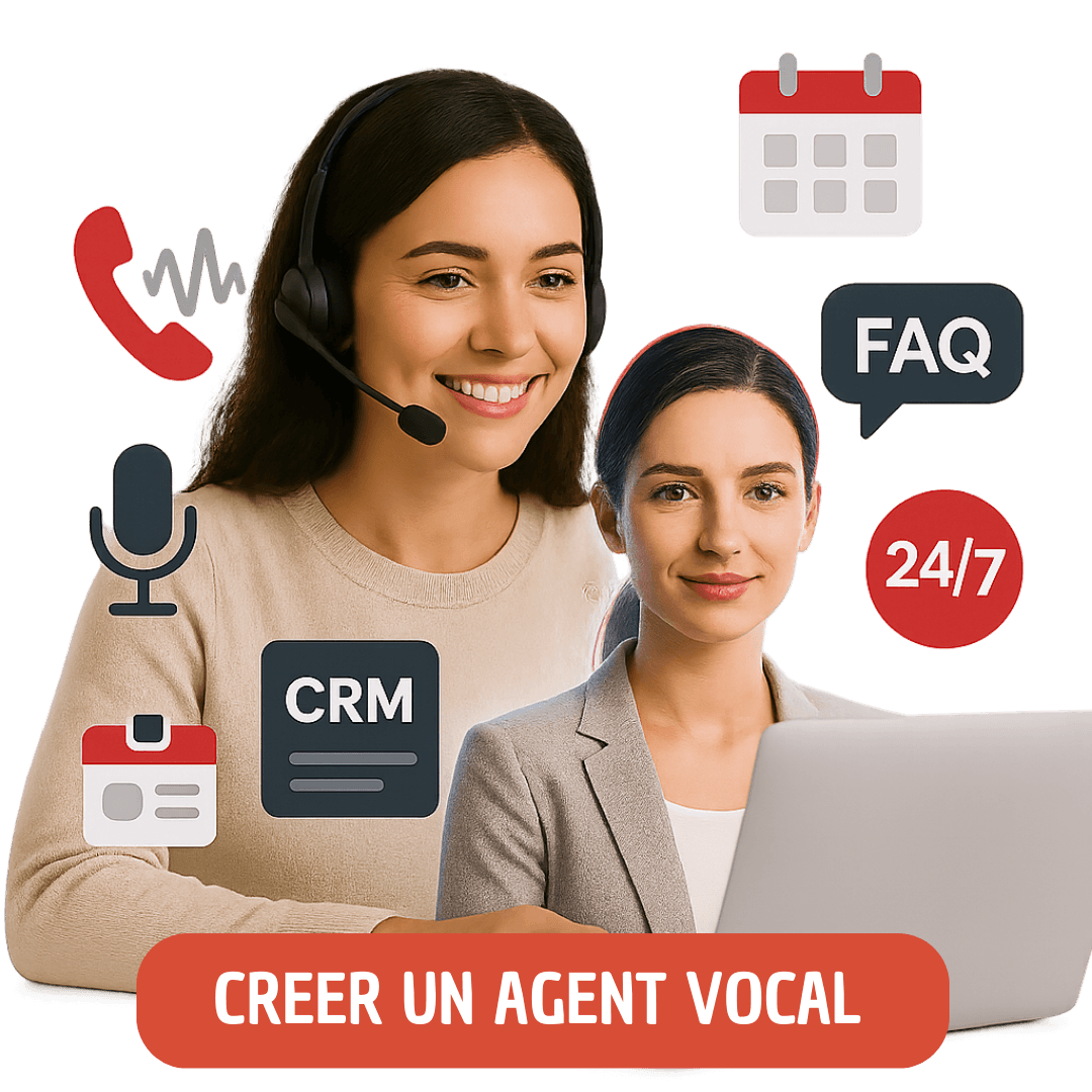 Imagine un assistant qui décroche, répond, guide et rassure les prospects ou clients… avec une voix naturelle, disponible 24/7.